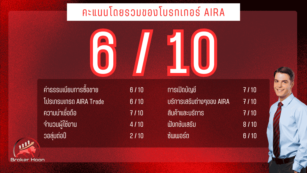คะแนนรวมของโบรกเกอร์ AIRA มีคะแนน 7.2 จาก 10 คะแนน