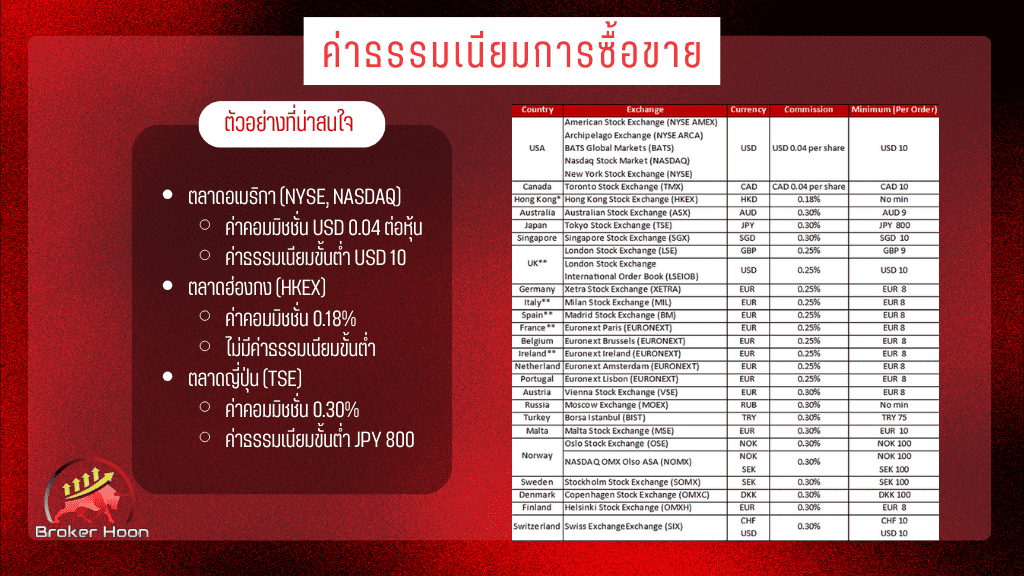 ตัวอย่างค่าธรรมเนียมตลาดต่างประเทศ
