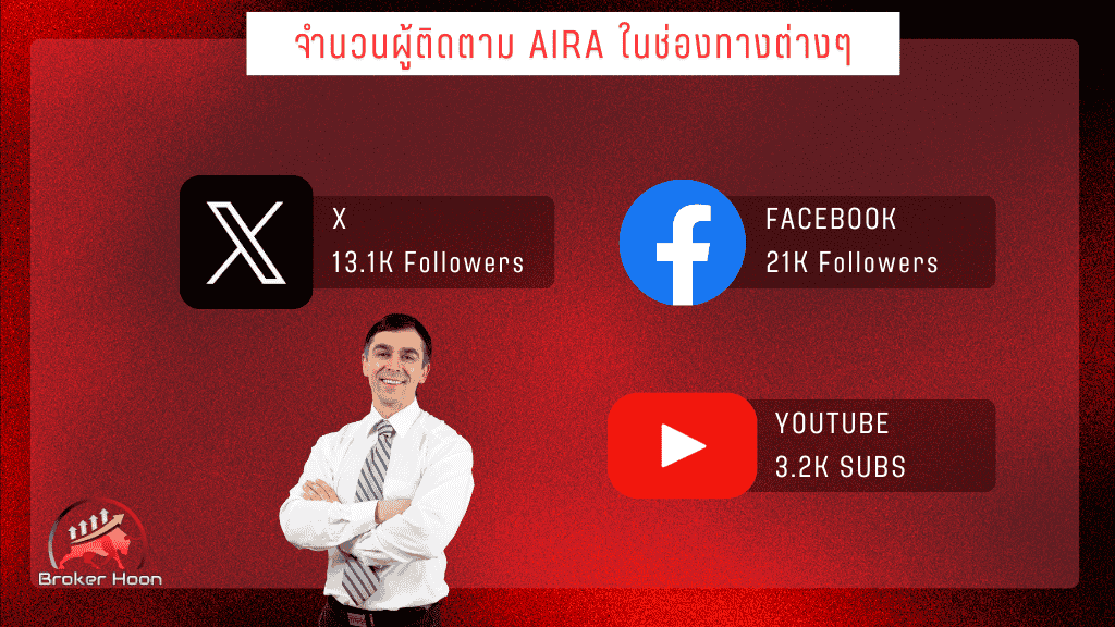- AIRA มีผู้ติดตามไม่ได้เยอะมากถ้าเปรียบเทียบกับโบรกเกอร์เจ้าอื่นๆ