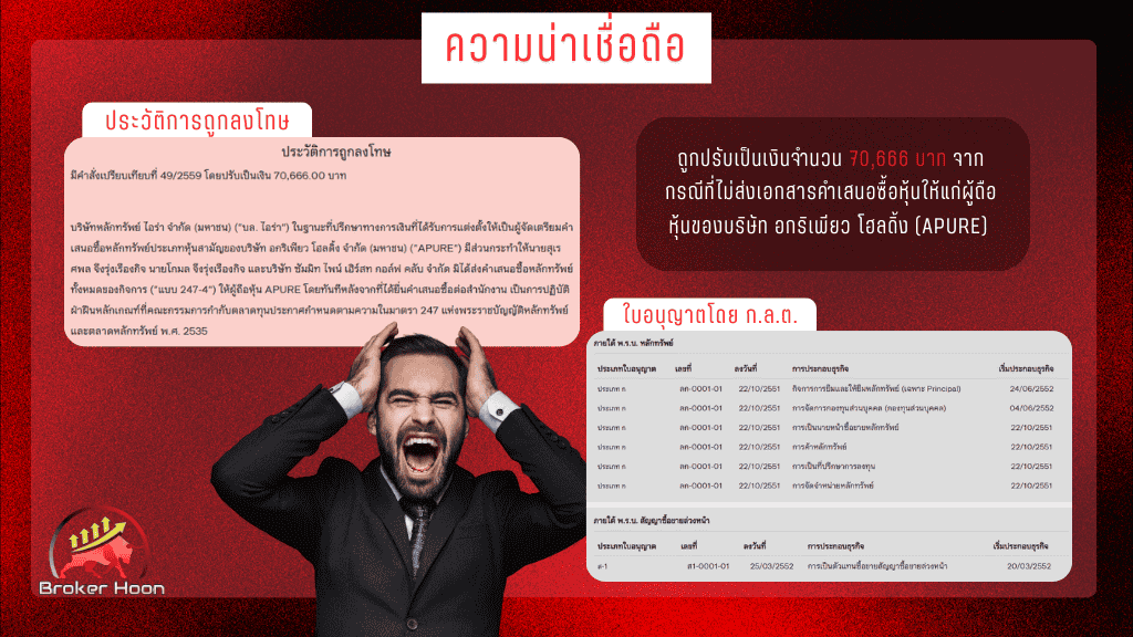 ประวัติการถูกลงโทษ และ ใบอนุญาตโดย ก.ล.ต.